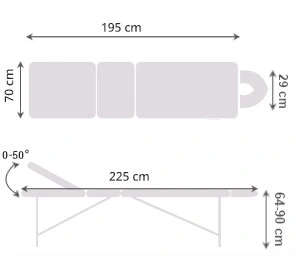 3-секційний стіл з підйомною секцією (0–50°, 10 позицій)