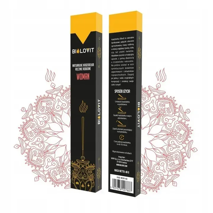 Індійські пахощі Woman, вручну скручені навколо бамбукової палички, мають квітковий, злегка екзотичний аромат з тонкою медовою нотою.
